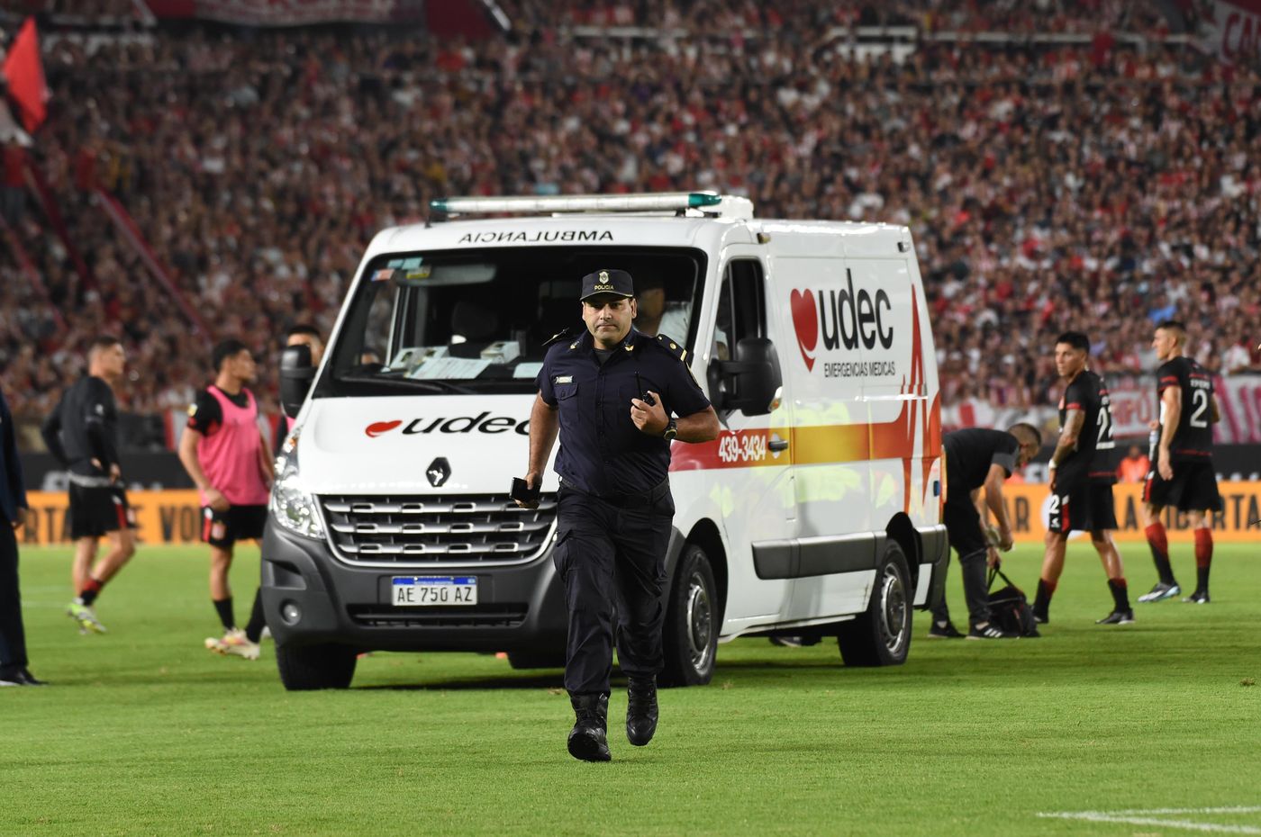 La noche de fútbol en UNO quedó eclipsada por la dura imagen de uno de los futbolistas de Estudiantes, Javier Altamirano, quien tuvo que ser hospitalizado.