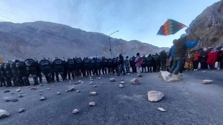 Comunidades originarias y organizaciones sociales que mantienen cortes de rutas en norte de Jujuy, en rechazo a la reforma parcial de la Carta Magna provincial que "limita el derecho a la protesta social".