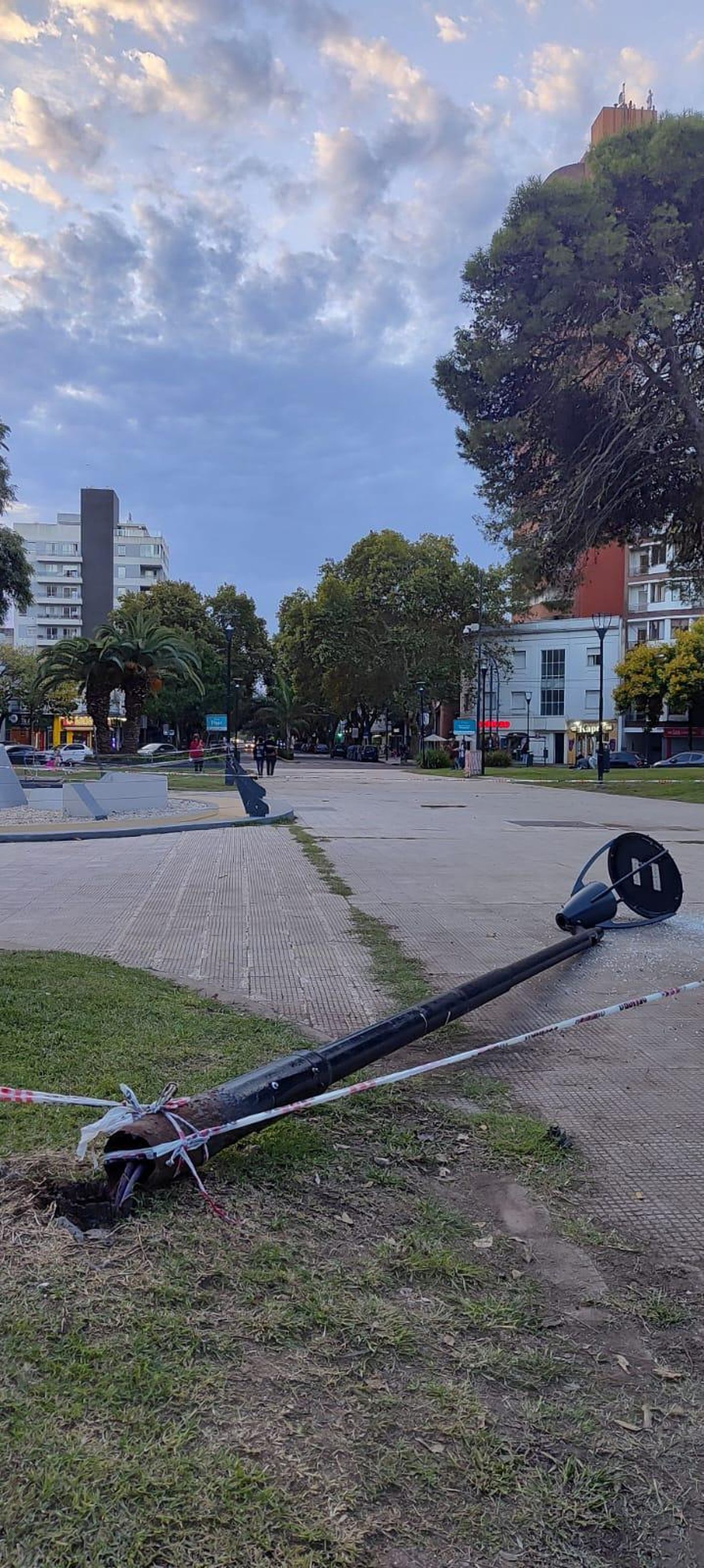 Un poste del alumbrado público se desplomó en una plaza de La Plata y golpeó a un nene que jugaba en el lugar