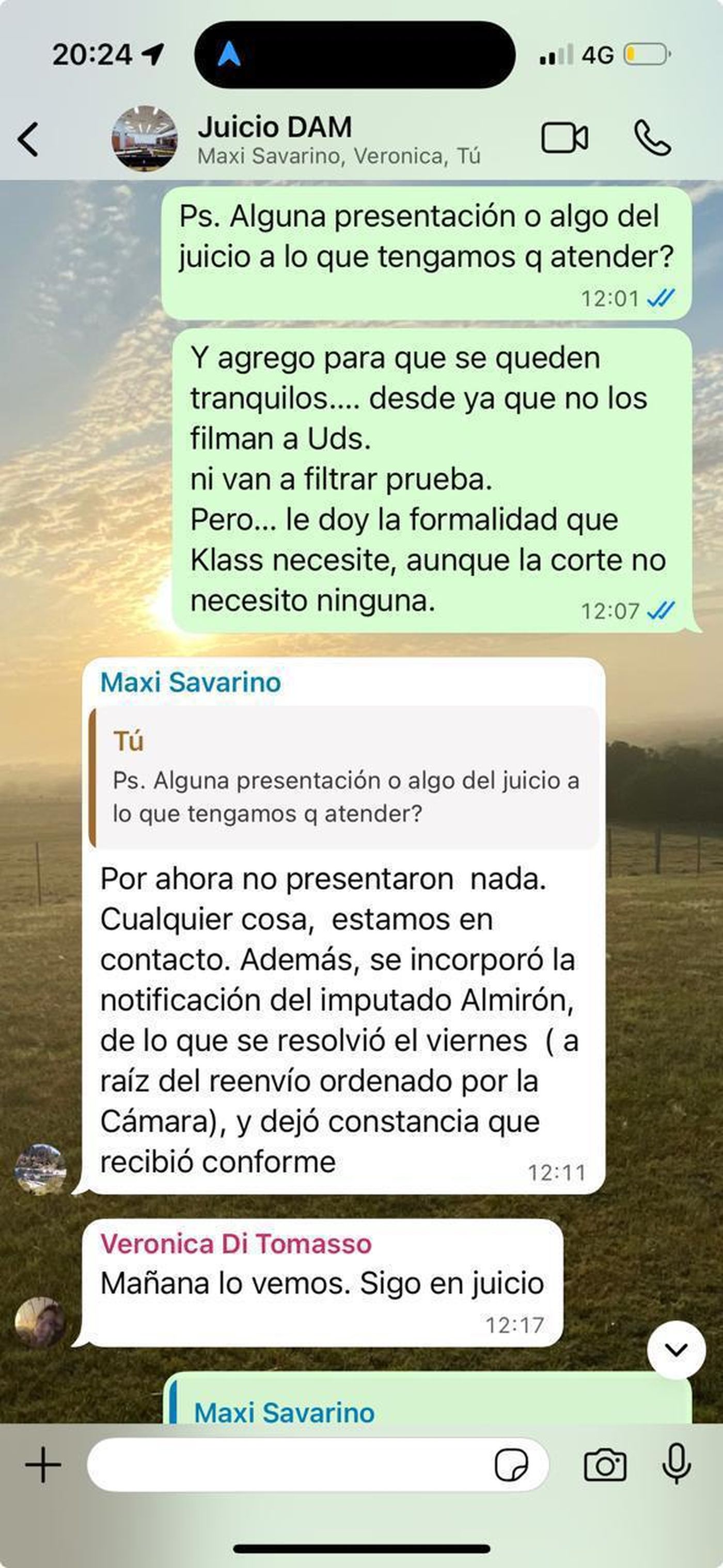 Si bien los chats no fueron aceptados como prueba, 0221.com.ar tuvo acceso a los mismos. Se trata de una conversación en un grupo de WhatsApp creado para el juicio del caso Maradona y que se llama Juicio DAM.
