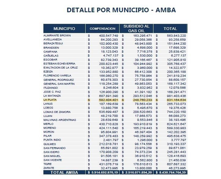 Garro tomó la bandera para sentar postura porque La Plata aparece al tope de las que resultarían perjudicadas con 831.164.634 pesos. Ni más ni menos que el 10% del presupuesto total estimado para 2019, el cual debiera ser distribuido entre las empresas de transporte locales para evitar que el boleto se dispare a cifras que masacrarían a los sectores más postergados, que son los que toman el micro todos los días: algunos intendentes estiman que sin subsidio el valor promedio de cada pasaje rondaría un dólar, a números de hoy entre 37 y 40 pesos.