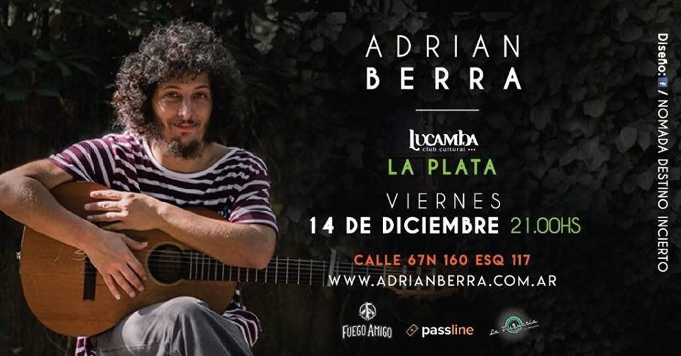 Adrián Berra se presenta nuevamente en nuestra ciudad, en un concierto intimo y acústico, en esta ocasión su voz y su guitarra recorrerán canciones de su ultimo disco "Mundo debajo del Mundo" y temas de su repertorio.
