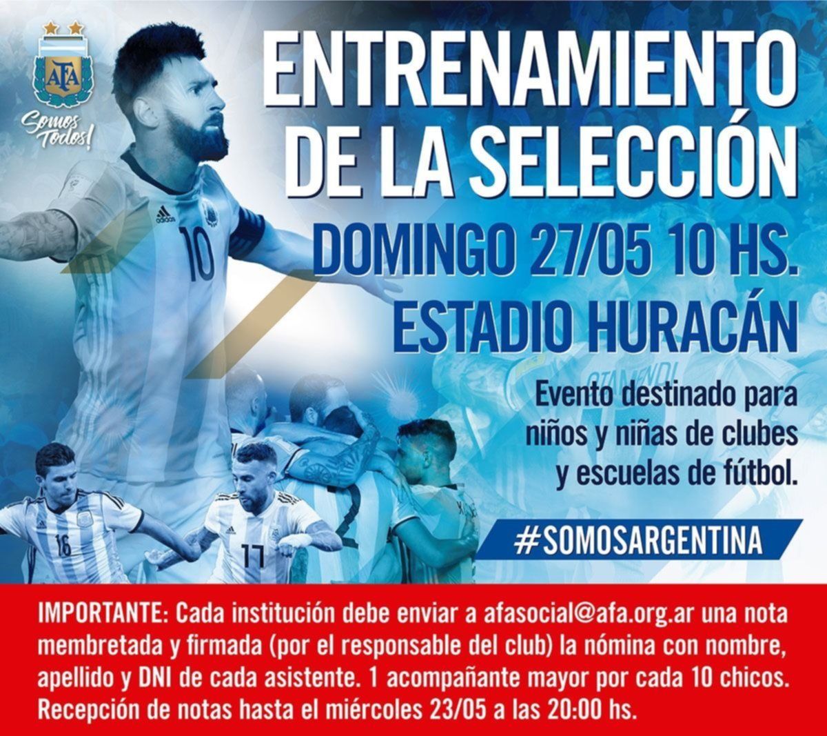 ¿Lo querés ver a Lionel Messi entrenando antes de viajar a Rusia? Bueno, lo vas a poder hacer. Es que desde la AFA organizaron un evento para que lo disfruten los chicos que concurren a comedores, clubes o escuelas. La jornada de entrenamiento será este domingo en la cancha de Huracán.
