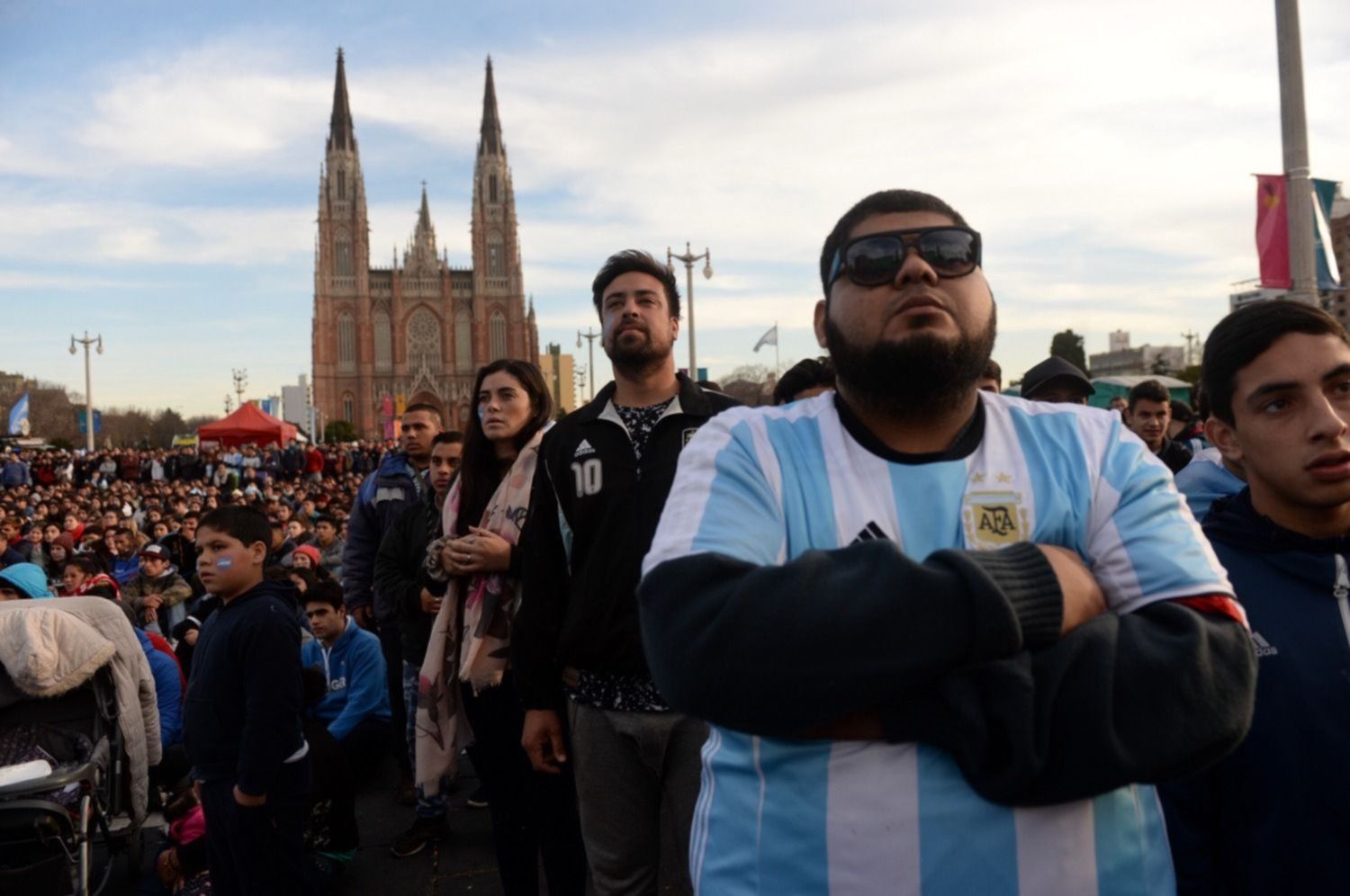 La Plaza Moreno volvió a teñirse de celeste y blanco ante el encuentro que mantiene paralizada a la ciudad. Cientos de platenses se dieron cita en pleno centro de La Plata y viven a puro nervio el partido del que depende el futuro de la Argentina en la Copa del Mundo de Rusia.