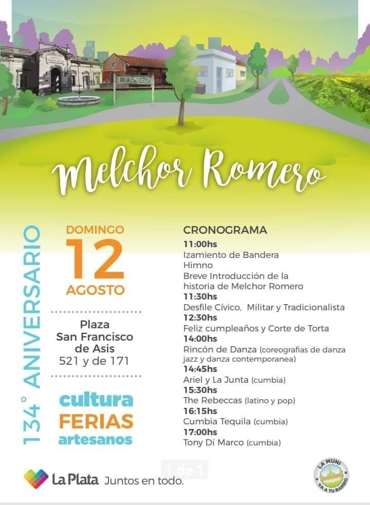 La localidad cumplió 134 años el pasado 12 de julio y este domingo la Municipalidad de La Plata realizará los festejos en la plaza San Francisco de Asís. Las actividades comenzarán a las 11 en el predio de 521 y 171 con el izamiento de la Bandera y el Himno Nacional. Minutos después se dará inicio al desfile tradicionalista, mientras que pasado el mediodía se cantará el feliz cumpleaños con la infaltable torta aniversario.