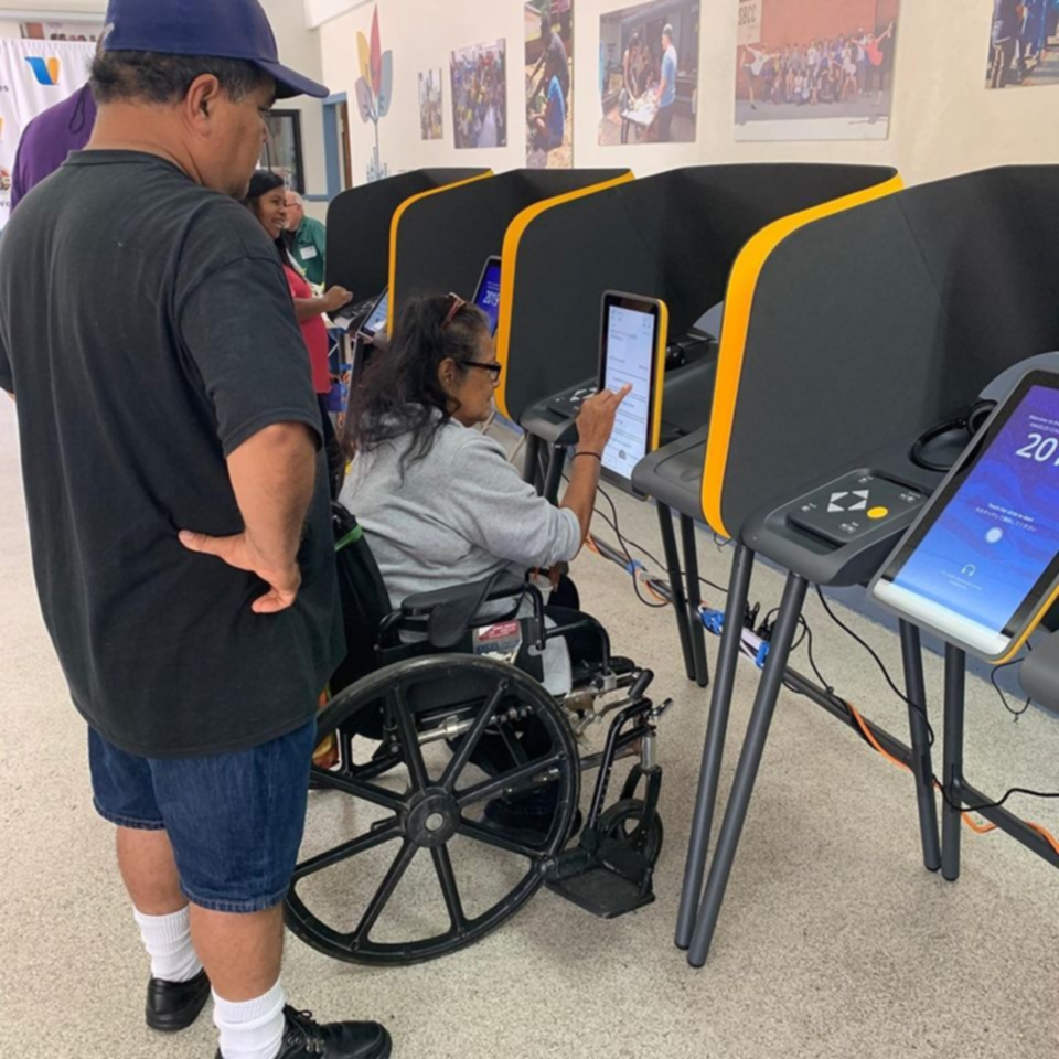 El Condado de Los Ángeles es la jurisdicción más grande de los Estados Unidos en términos de tamaño y número de votantes y para poder abarcar toda la demanda se repartieron un total de 1.200 máquinas de votación en los 50 centros de votación seleccionados del condado. Los equipos son muy parecidos a un iPad, siendo muy fáciles de navegar, pero con la diferencia de que no están conectados a Internet.