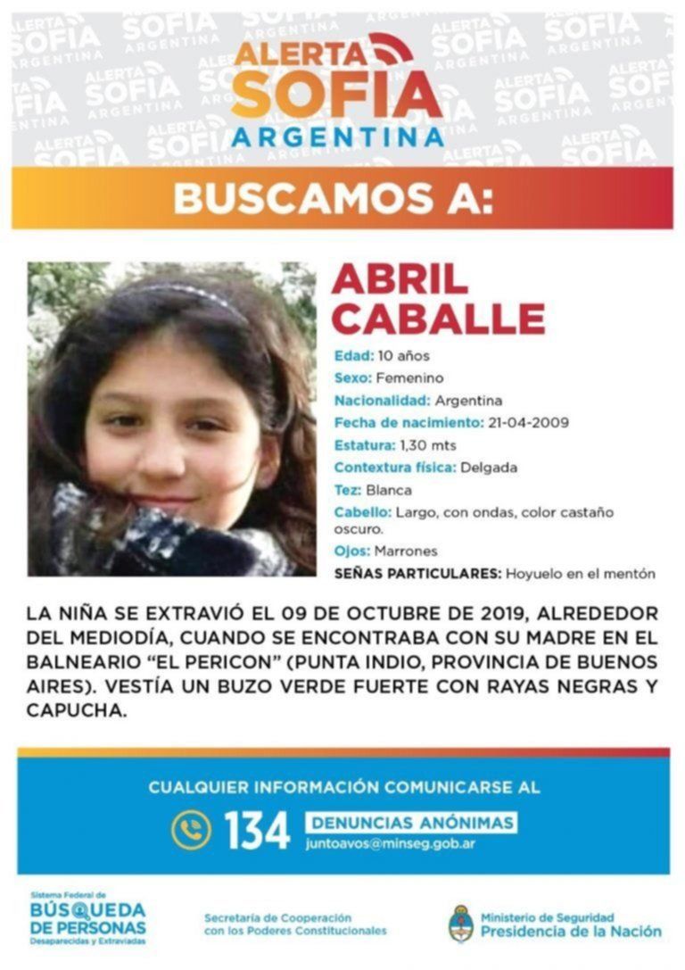 “Queremos encontrar a Abril lo antes posible”, mencionaron en un comunicado desde la cartera a cargo de la ministra Patricia Bullrich. Asimismo, se dispuso un rastrillaje en la vivienda de Juan Carlos Farías, el cuidador del camping donde la pequeña desapareció.