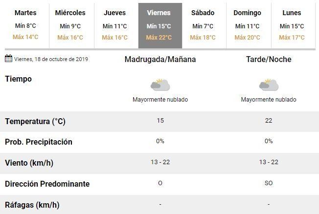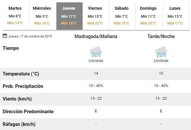 En cualquier caso, habrá que esperar hasta el viernes para disfrutar de una jornada sin lluvias. Sin embargo, se espera un día con mucha nubosidad y humedad, con una temperatura que oscilará entre los 15 y los 22°C.