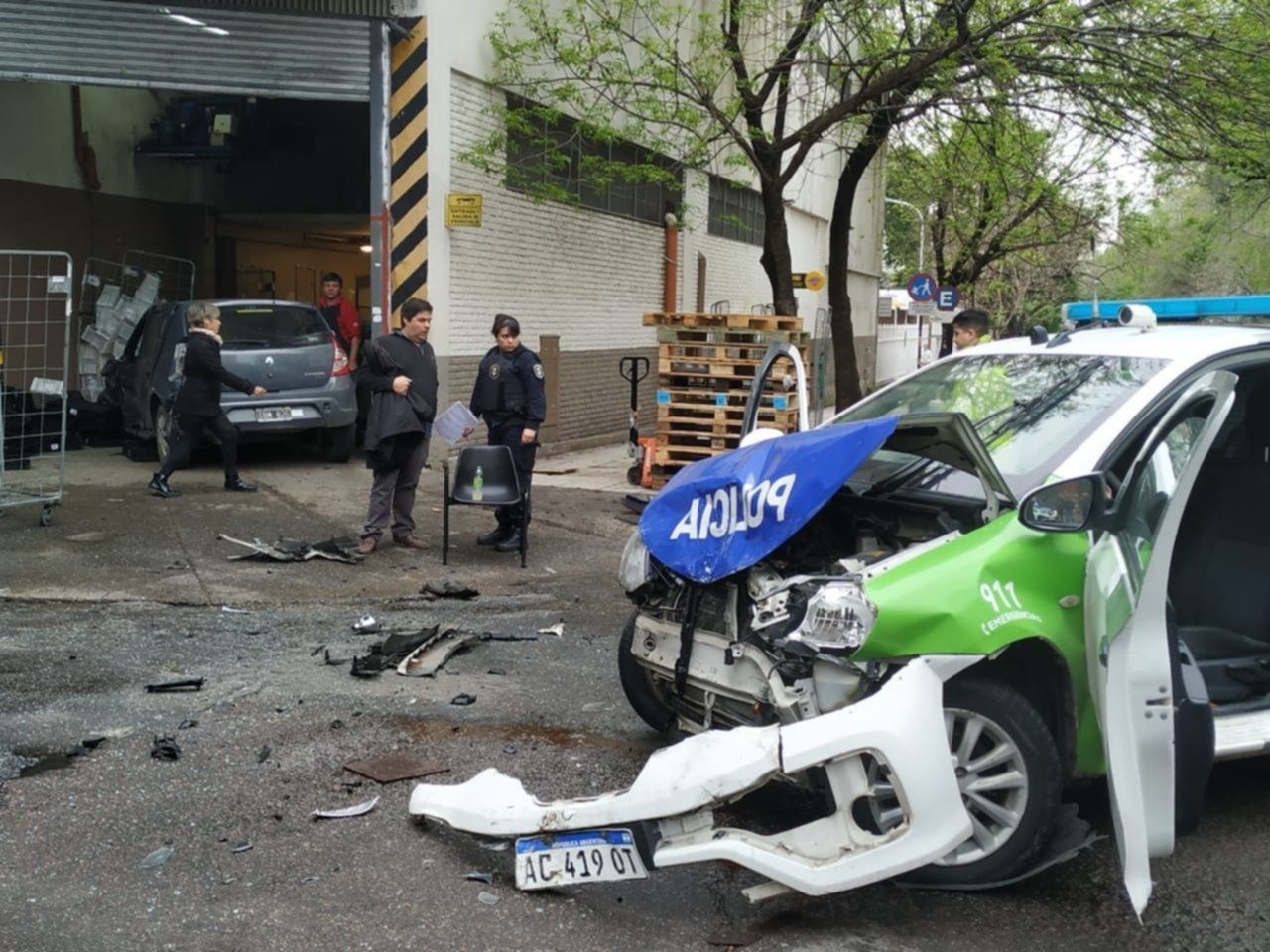 Este miércoles, además, un patrullero protagonizó un tremendo choque con otro auto, que terminó adentro del depósito de un supermercado.