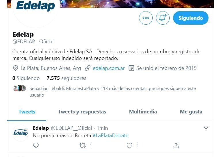 "No puede más de Berreta #LaPlataDebate". Así de breve y controversial fue el mensaje que habría sido publicado en la cuenta oficial de Twitter de Edelap y cuya captura circuló con gran velocidad en WhatsApp.
