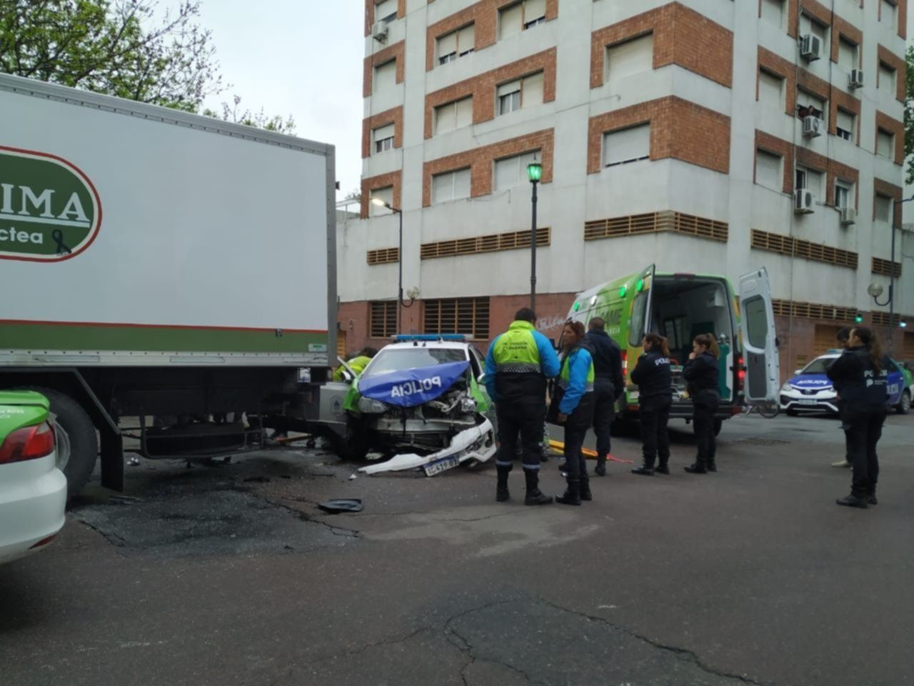 Producto de accidente dos policías que iban en el móvil resultaron heridos, mientras que el conductor del Sandero también debió ser asistido por personal del SAME, aunque cabe destacar que ninguno de los tres con lesiones de gravedad.