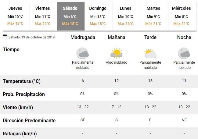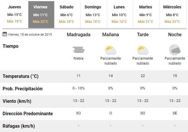 Para el fin de semana, en tanto, se prevé un fuerte descenso de la temperatura. El sábado se espera una mínima de 6°C y una máxima de 18°C, un cielo parcialmente nublado y hasta algo de sol en la ciudad.
