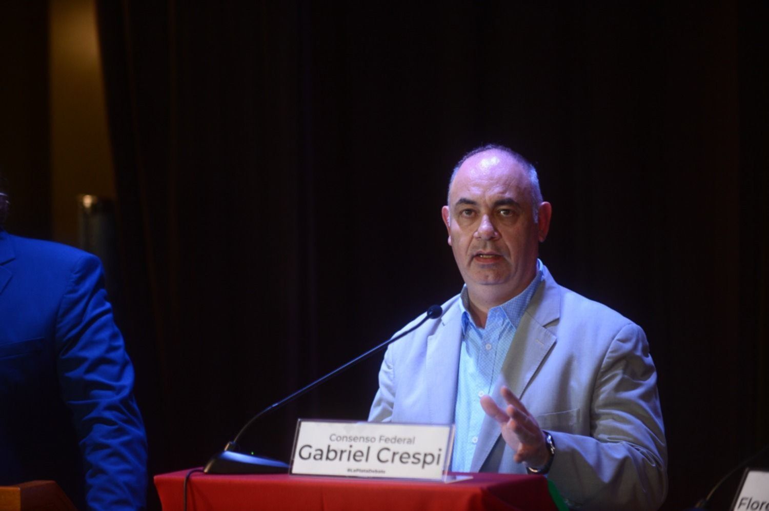 El lavagnista Gabriel Crespi se colocó en una tercera posición abstraído de esa disputa, para plantear un diagnóstico de ciudad usufructuando su perfil de ingeniero. Con una preparación previa que lo ayudó a transitar una experiencia que le resultaba novedosa por ser su primera incursión en política partidaria, se preocupó en marcar algunos ejes que serían claves en su gestión, como la planificación y la atención al déficit alimentario, en un tono semejante al que ensayó Roberto Lavagna en el debate presidencial, cuando tuvo que cuestionar a alguno de sus rivales optó por pegarle a Garro por el estado de la ciudad aunque también esbozó la crítica a la ausencia de Saintout.