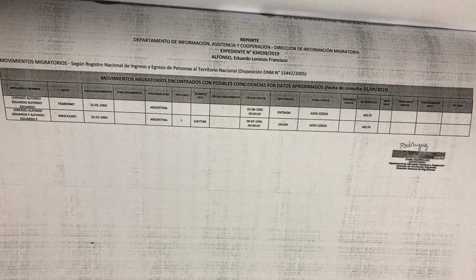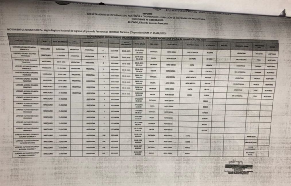 Según se detalla, el 23 de noviembre de 1997 viajó a Río de Janeiro, Brasil; el 20 de agosto de 1999 se fue a Miami; en 2000 y 2001 también realizó viajes, el 19 de mayo de 2010 estuvo en Perú; el 14 de mayo de 2012 a México; y el 23 de agosto de 2015 y 21 de agosto de 2016 el destino elegido fue Panamá, Ecuador.
