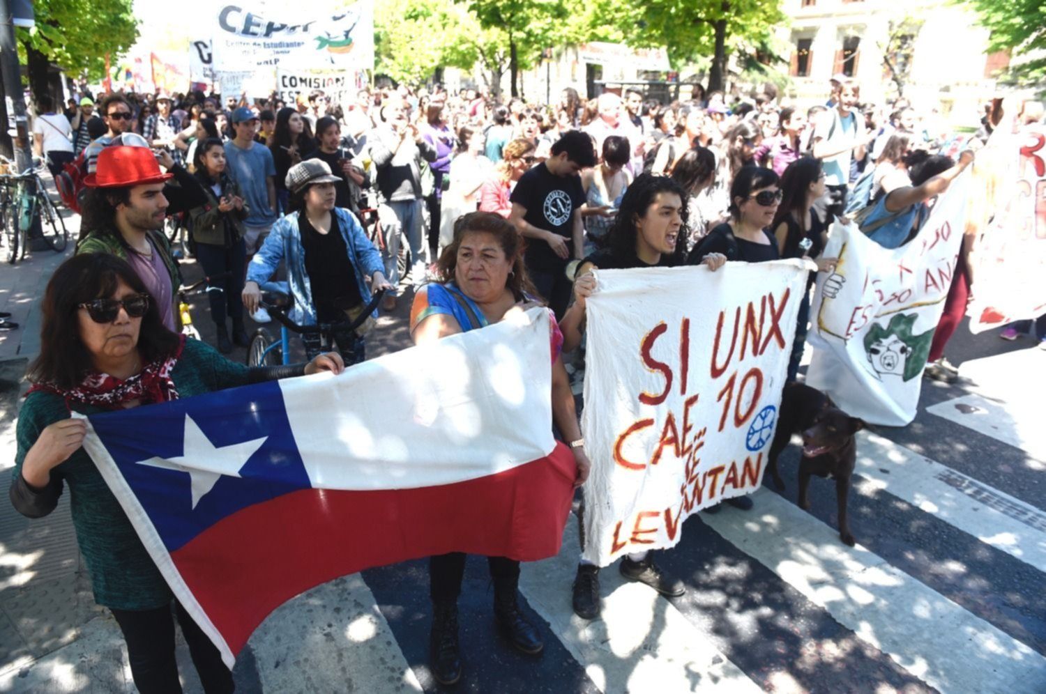 En "apoyo a las demandas del pueblo chileno y en repudio a la represión, a la violación sistemática de los DDHH, el ajuste de Sebastián Piñera, la censura y la manipulación de los medios masivos de comunicación", la asamblea de Chilenos y chilenas autoconvocadas en La Plata marchó por el centro de la ciudad junto con platenses autoconvocados y partidos de izquierda.