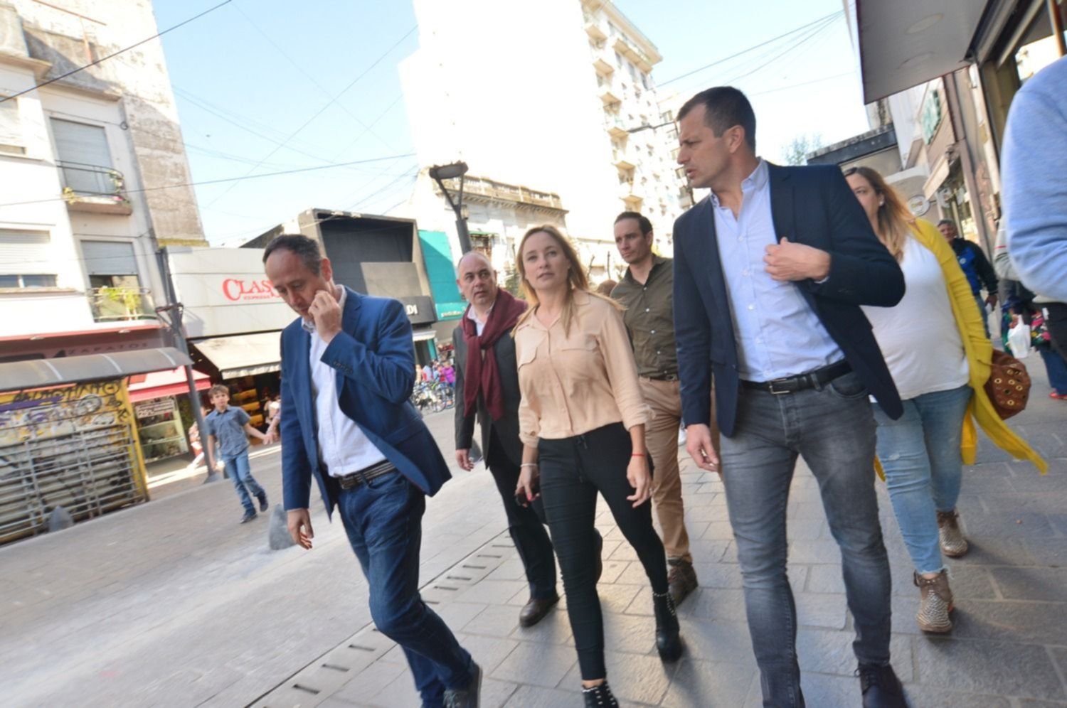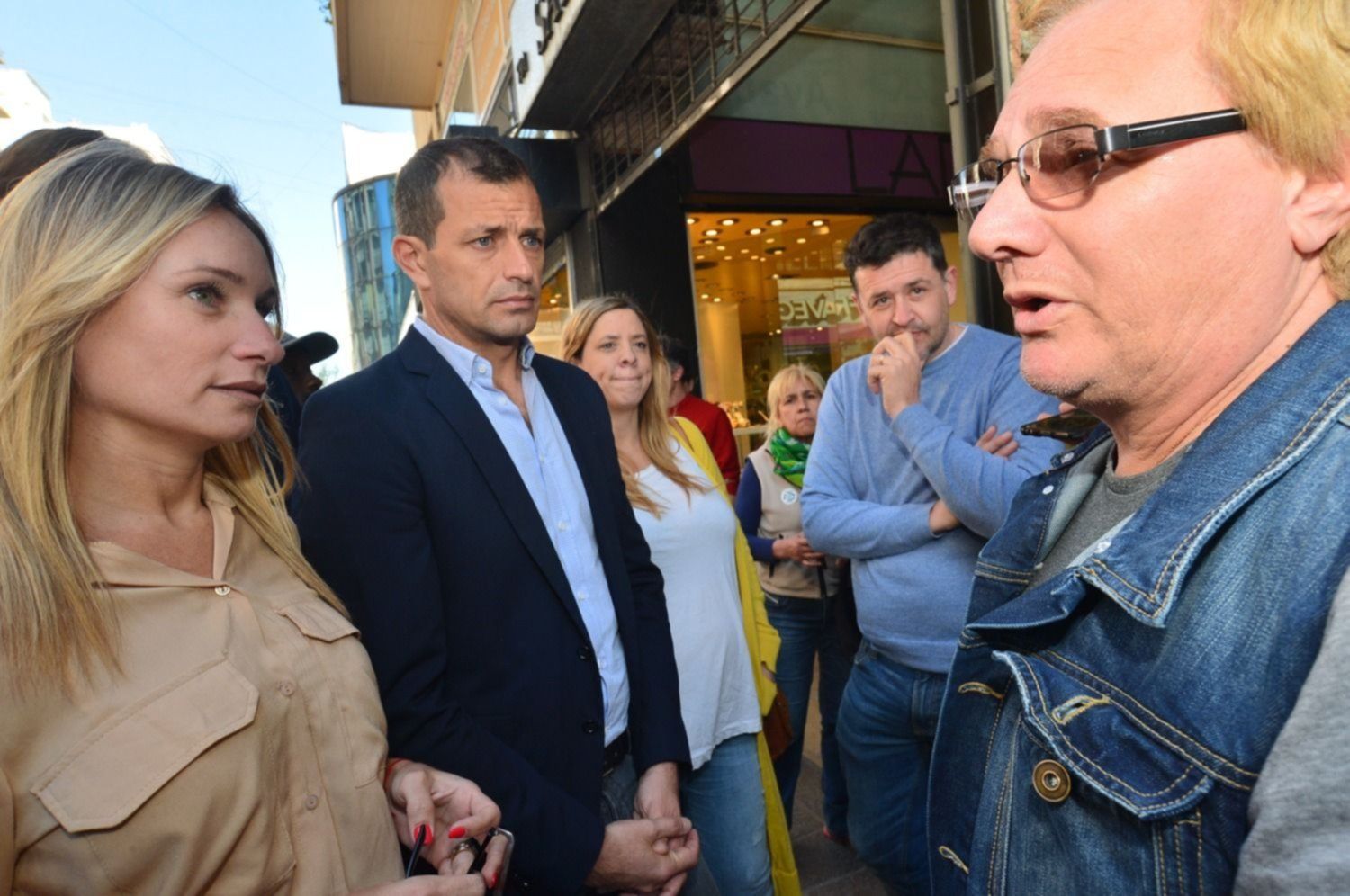 En una de sus visitas a la ciudad, Bucca acudió a la Cámara Argentina de la Construcción y luego realizó una caminata partiendo desde calle 8 y 48. Allí conversó con algunos comerciantes acerca de la crisis económica que golpea al sector y al resto de la comunidad en general.