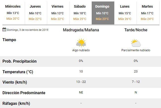 De acuerdo con su pronóstico, la temperatura oscilará entre los 10 y los 22°C y no habrá chances de lluvias.