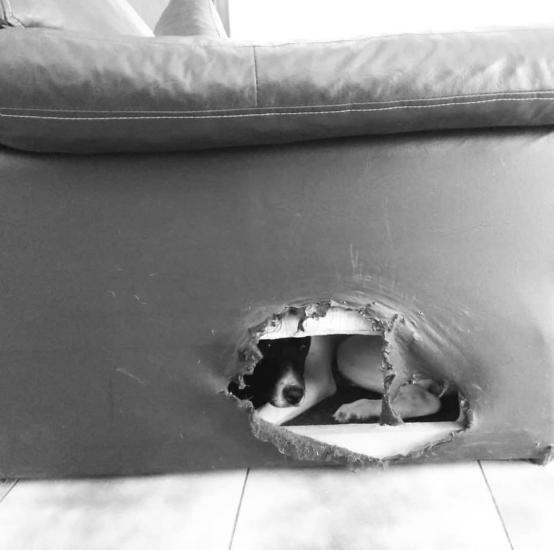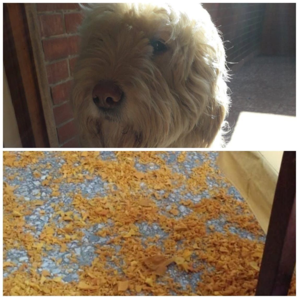 Se trata de perros y gatos que fueron atrapados con las patas en la masa, pero a todos se los ve intentando disimular y hasta con una hermosa cara de "yo no fui". ¿Te pasó alguna vez?