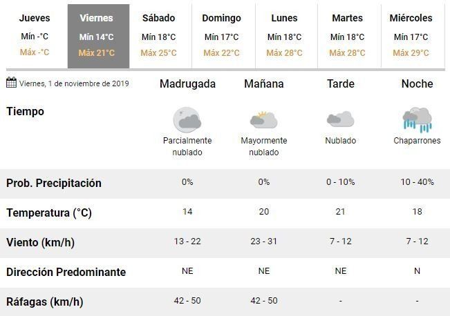 Para el sábado, en tanto, esperan un día con cielo parcialmente nublado y buenas condiciones del tiempo, con una temperatura mínima de 16°C y una máxima que podría llegar hasta los 24°C.