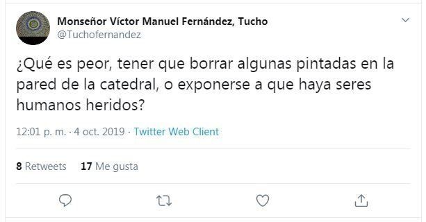 La polémica volvió a recrudecer con el tuit de Tucho, quien habló de la supuesta vandalización de la Catedral y lo minimizó ante la posibilidad de "humanos heridos".