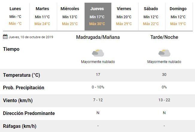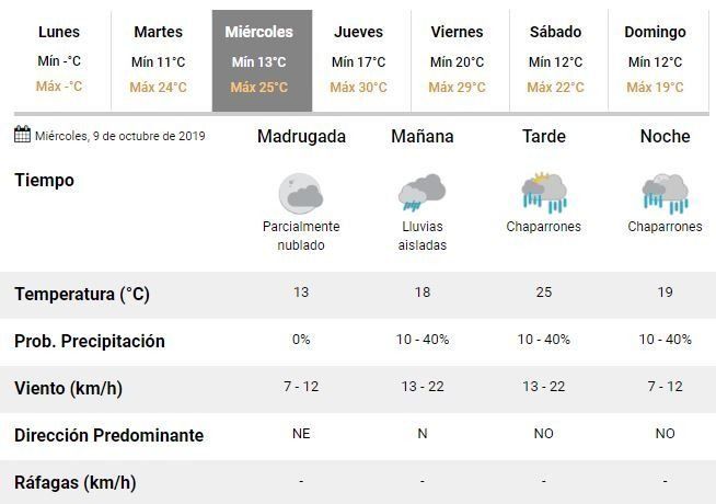En esa línea adelantaron que las probabilidades de lluvias irán en aumento a lo largo de la jornada y que se prevé una mínima de 13°C y una máxima en torno a los 25°C.