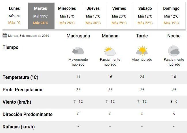 El lunes amaneció con excelentes condiciones de tiempo y terminó de la mejor manera, sin embargo, el buen clima de primavera no parece destinado a durar o al menos así lo creen los expertos. De acuerdo con los especialistas del Servicio Meteorológico Nacional (SMN), para este martes se prevé una jornada de buen tiempo, con un cielo parcialmente nublado y una temperatura que oscilará entre los 11 y los 24°C.