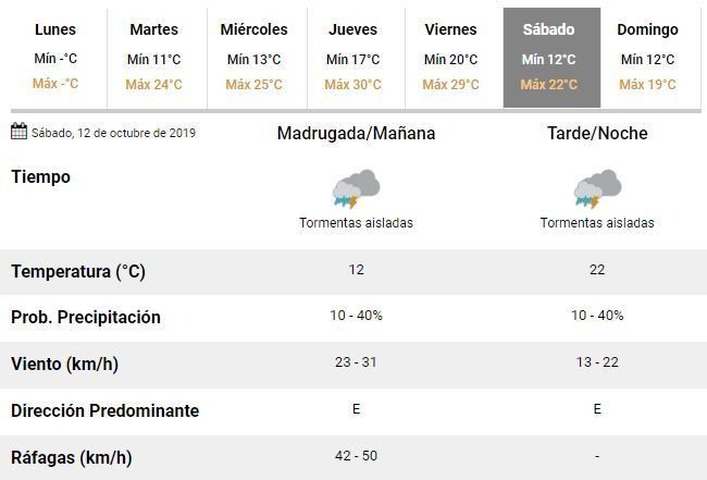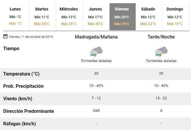 De acuerdo con las estimaciones, el viernes será el peor día de la semana. Los expertos anunciaron que la ciudad se verá alcanzada por tormentas aisladas y vientos de variada intensidad, entre 7 y los 22 km/h.
