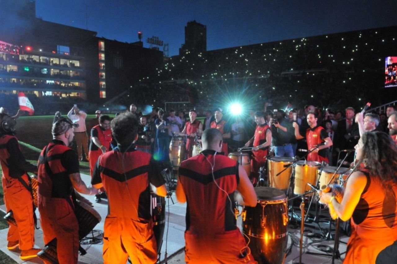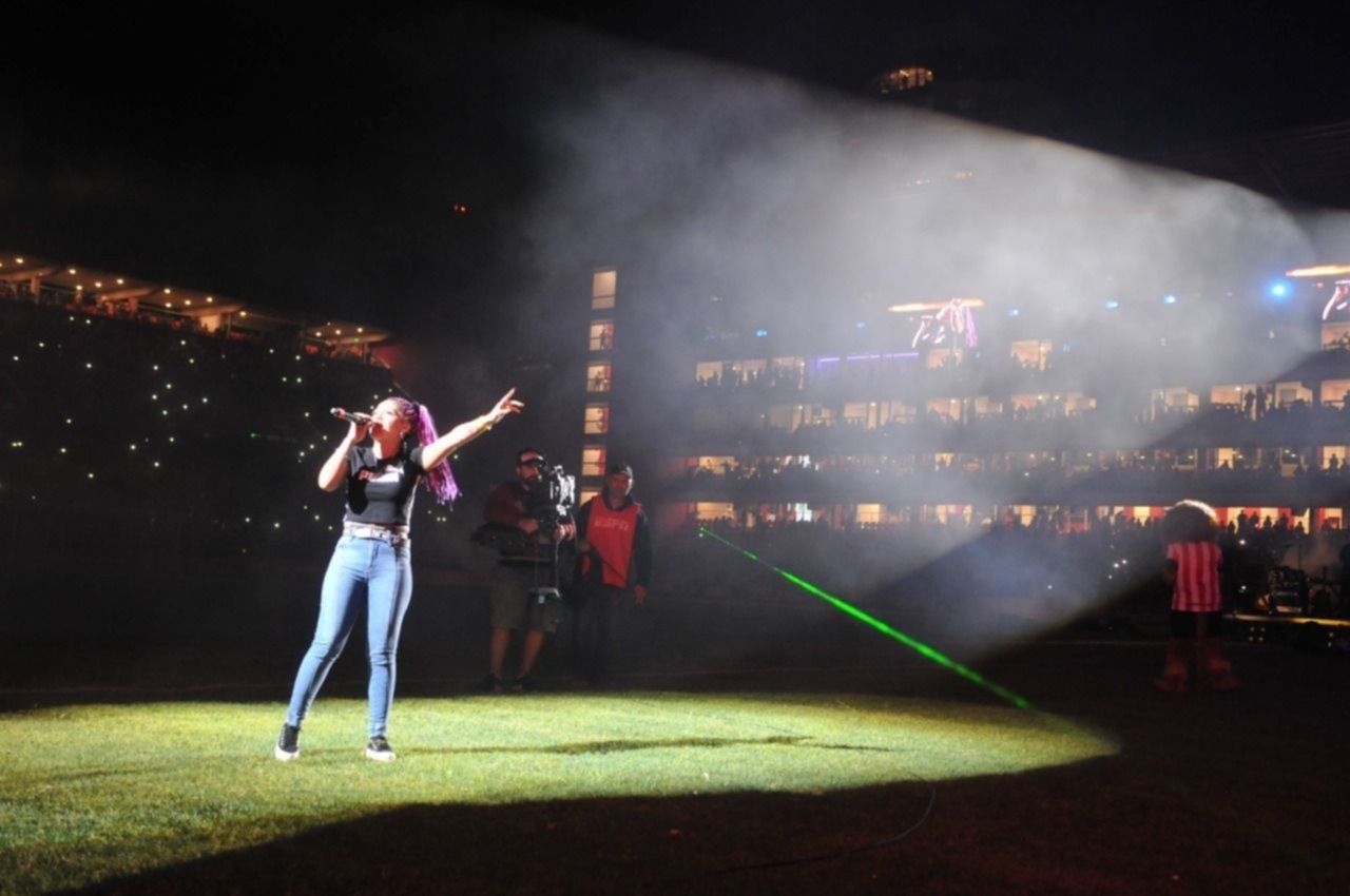 Más tarde subió la cantante Johana Rodríguez, del grupo Viru Kumbiera y el espectacular juego de luces volvió a cautivar a los hinchas que no pararon de entonar la clásicas canciones tribuneras. El plato musical previsto para la jornada fue el show de Los Auténticos Decadentes.