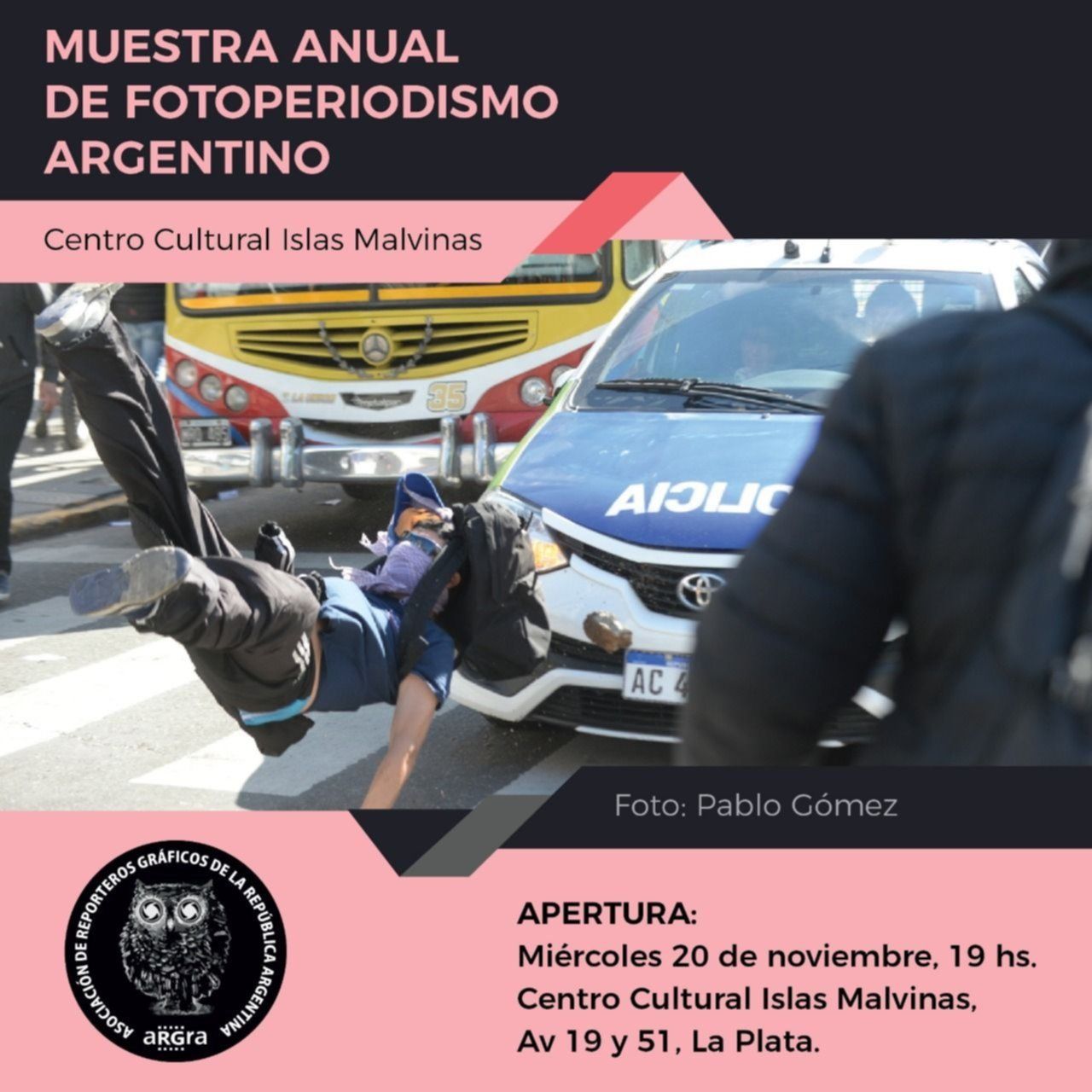 El próximo miércoles 20 de noviembre a las 19.30, el Centro Cultural Islas Malvinas será testigo de la 30° muestra anual de Fotoperiodismo Argentino. El evento impulsado por ARGRA exhibirá más de un centenar de fotos representativas registradas en 2018.