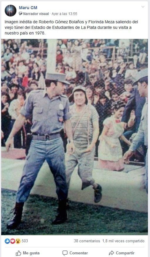 Una vieja foto a color en la que el Chavo del 8 ingresa sonriente al viejo Estadio de Estudiantes, a metros del túnel que estaba en la cabecera de la calle 55, por el cual a su vez emerge Doña Florinda, sorprendió a los usuarios de las redes sociales platenses, muchos de los cuales no recuerdan semejante visita. La veracidad de la imagen fue puesta en duda y hasta el momento solo la memoria de algunos que dicen haber estado en el lugar en aquel momento la sostienen. No hay certeza de la fecha, mientras algunos dice que puede haber sido en 1978 o 1979, otros aseguran que tiene que haber sido ya entrada la década del ’80. Las imágenes aparecieron a días de cumplirse cinco años de la muerte de Roberto Gómez Bolaños, el creador del personaje fallecido el 28 de noviembre de 2014.