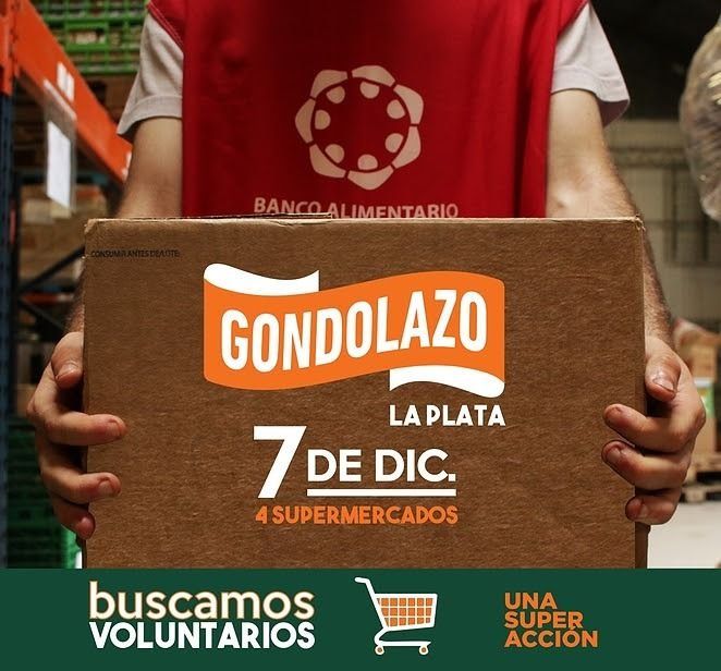 El próximo sábado 7 diciembre llegará una nueva edición del "Gondolazo", la propuesta del Banco Alimentario para reunir alimentos que luego serán donados a instituciones y familias que los necesiten. En ese marco, los integrantes de la entidad realizarán estarán de 9 a 21 en las puertas de cuatro supermercados platenses, buscando incentivar a los clientes a donar comida luego de haber realizado sus compras.