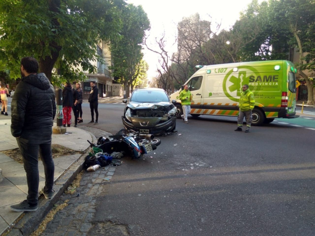 Todo sucedió en la esquina de diagonal 73 y calle 54. Según informaron fuentes oficiales a 0221.com.ar, el Peugeot circulaba por el diagonal y embistió a la motocicleta que iba a alta velocidad por 54, y la cual habría cruzado el semáforo en rojo.