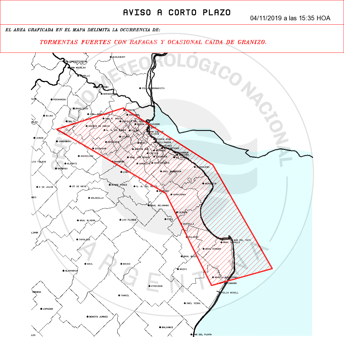 El SMN decidió renovar el alerta climática que había publicado horas atrás y adelantó que podrían generarse algunas tormentas de variada intensidad sobre La Plata y la región. El aviso rige para gran parte de la costa bonaerense, desde Zárate hasta el norte de la localidad de Mar del Plata.