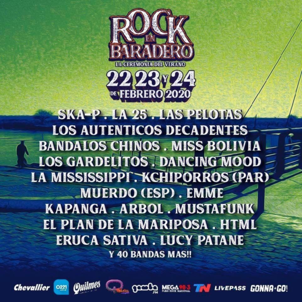 Ska-P, la 25, La Pelotas, Los Auténticos Decadentes, Bándalos Chinos, Miss Bolivia, Los Gardelitos, Dancing Mood, La Mississippi, Kchiporros (Paraguay), Muerdo (España), Emme, Kapanga, Árbol, Mustafunk, El plan de la mariposa, HTML, Eruca Sativa y Lucy Patane son algunos de los que se presentarán el sábado 22, domingo 23 y lunes 24 de febrero de 2020.