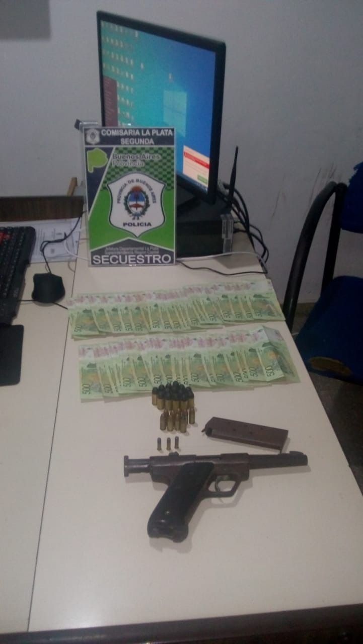 Después de varias semanas de investigación, agentes de la comisaría Segunda lograron allanar un domicilio a cuatro cuadras de donde ocurrió el hecho, donde incautaron una pistola calibre 22 marca Saurio 500, un cargador y tres balas, nueve proyectiles 9 milímetros, catorce proyectiles calibre 45 y 20.000 pesos.