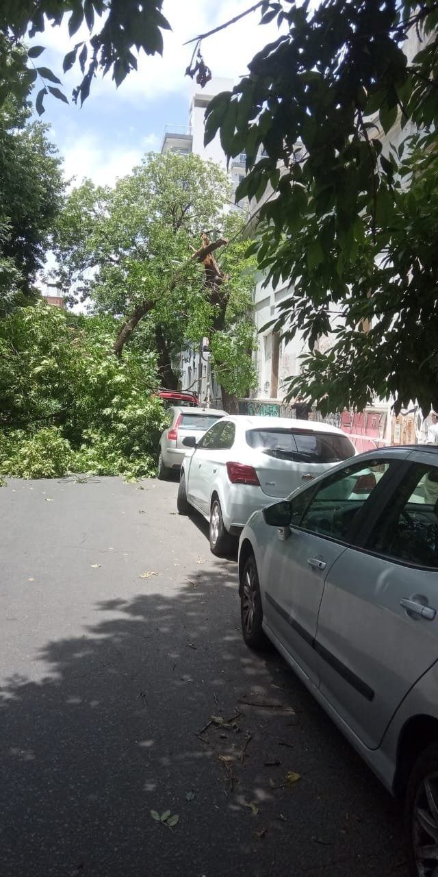 Según el relato de testigos que se comunicaron al WhatsApp de 0221, se trata de una Volkswagen Suran en la que viajaban dos mujeres, un nene y una nena. Estos circulaban por calle 10 entre 57 y 58, en el momento justo en el que las enormes ramas se cayeron sobre el vehículo.