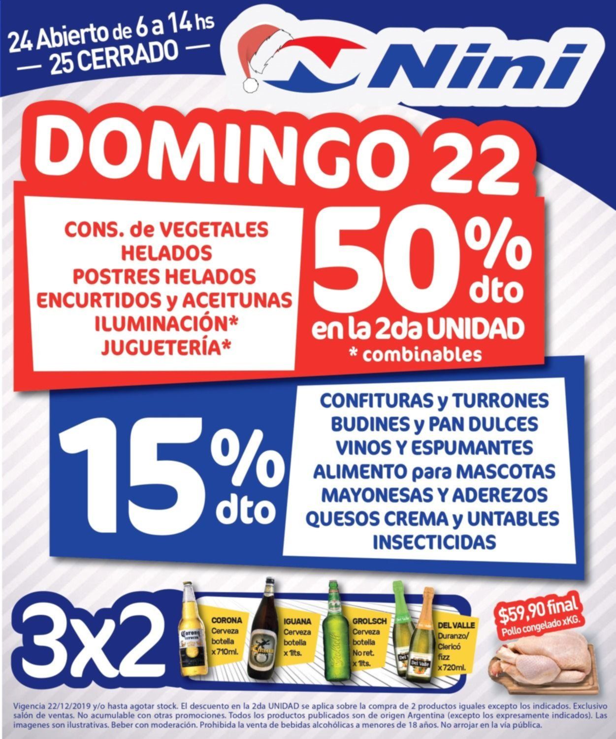 Con motivo de las Fiestas, Nini abrirá sus puertas todos los días de la semana para que sus clientes tengan más tiempo para realizar todas las compras. De esta forma, incluso este domingo 22 junto con el 29 habrá atención al público de 8 a 16 en el gigante de 520 esquina 25.