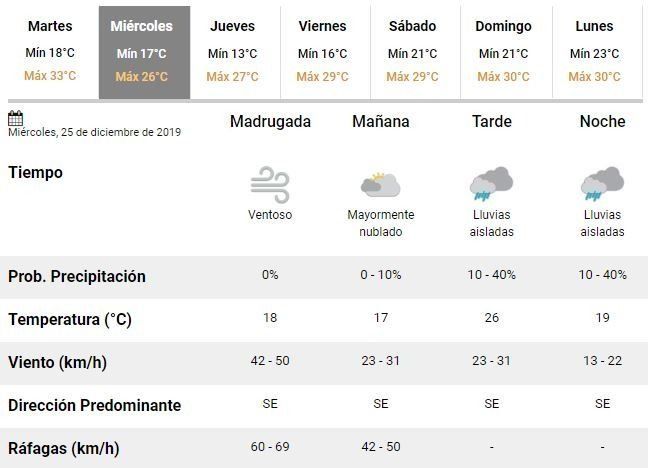 Aunque se espera un buen tiempo en la ciudad tanto para Nochebuena como para Navidad, los expertos adelantaron se sentirá con fuerza a lo largo de las dos jornadas y adelantaron que este miércoles podrían registrarse ráfagas de entre 60 y 70 km/h.
