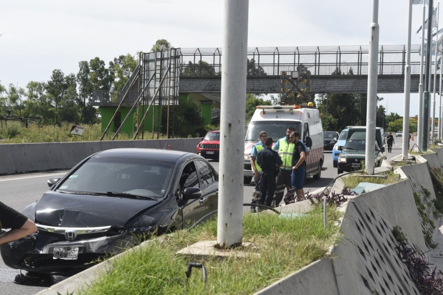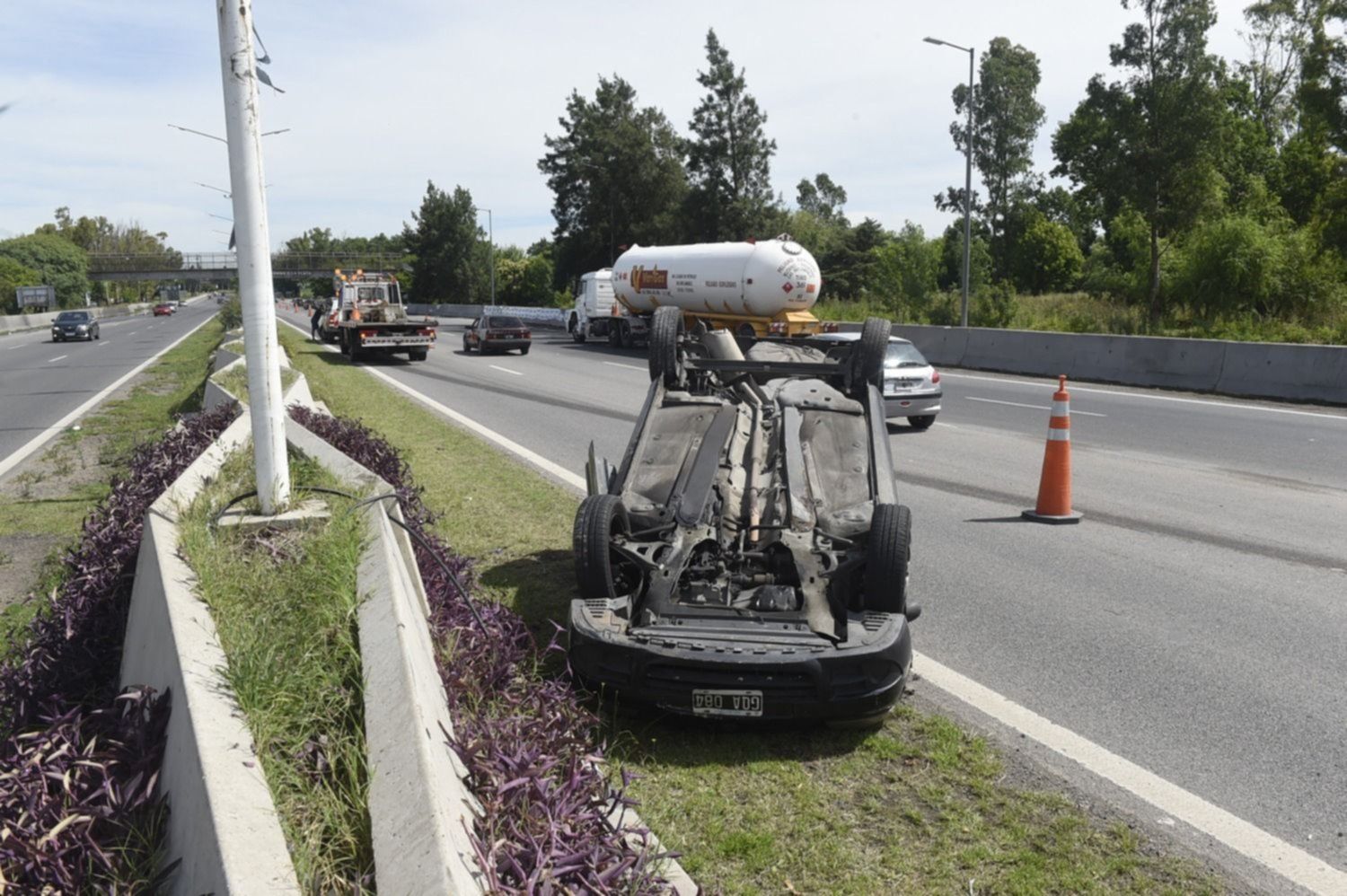 Un fuerte choque sorprendió a los automovilistas que circulaban este sábado en las inmediaciones de la rotonda de diagonal 74 y 122. Es que a pocos metros del lugar, justo en la bajada de la Autopista La Plata-Buenos Aires, dos autos protagonizaron un impactante siniestro que terminó con uno de los vehículos completamente dado vuelta.