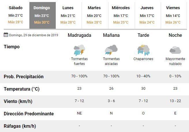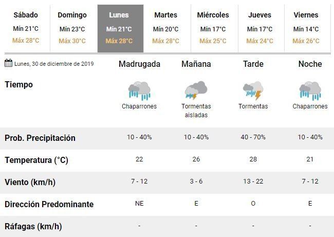 El tiempo no da tregua en la ciudad. Tras varios días de lluvias intermitentes y altas temperaturas, el 2019 cerrará pasado por agua y es que los expertos prevén que las malas condiciones climáticas continúen hasta el próximo miércoles.