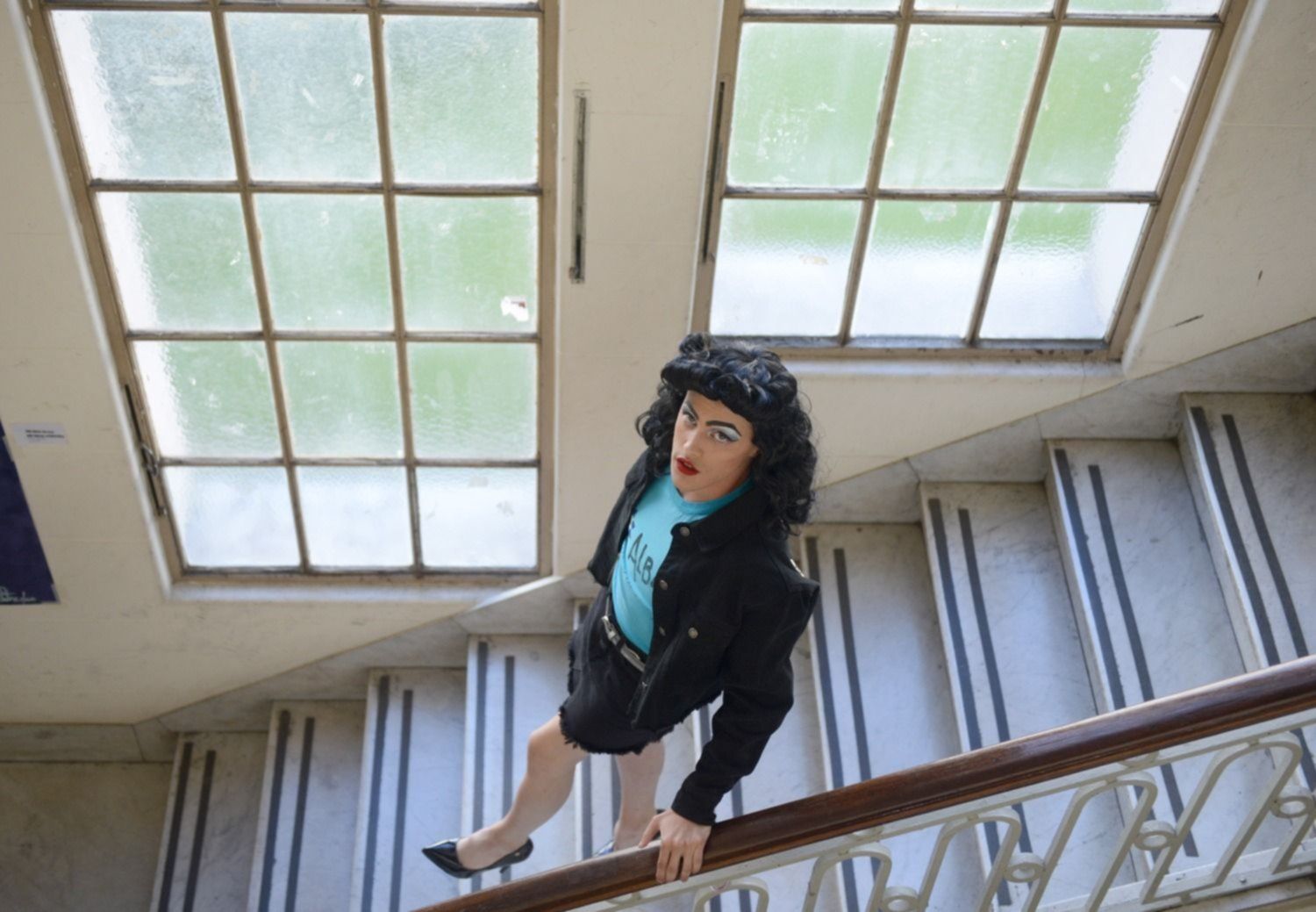 Es miércoles por la tarde y en los pasillos de la sede central de la Facultad de Bellas Artes de la UNLP, en diagonal 78 entre 8 y Plaza Rocha, se respira el clásico clima de fin de año. Allí los estudiantes ya no hacen largas filas en la fotocopiadora y el patio es el lugar más elegido para tomar unos mates, leer un apunte o ensayar una partitura musical. En ese marco, y acompañada por sus amigas Agustina y Natalia, llegó Bill In Cash, un personaje drag queen creado por Franco Lionel Fernández.