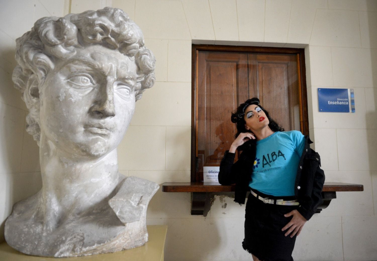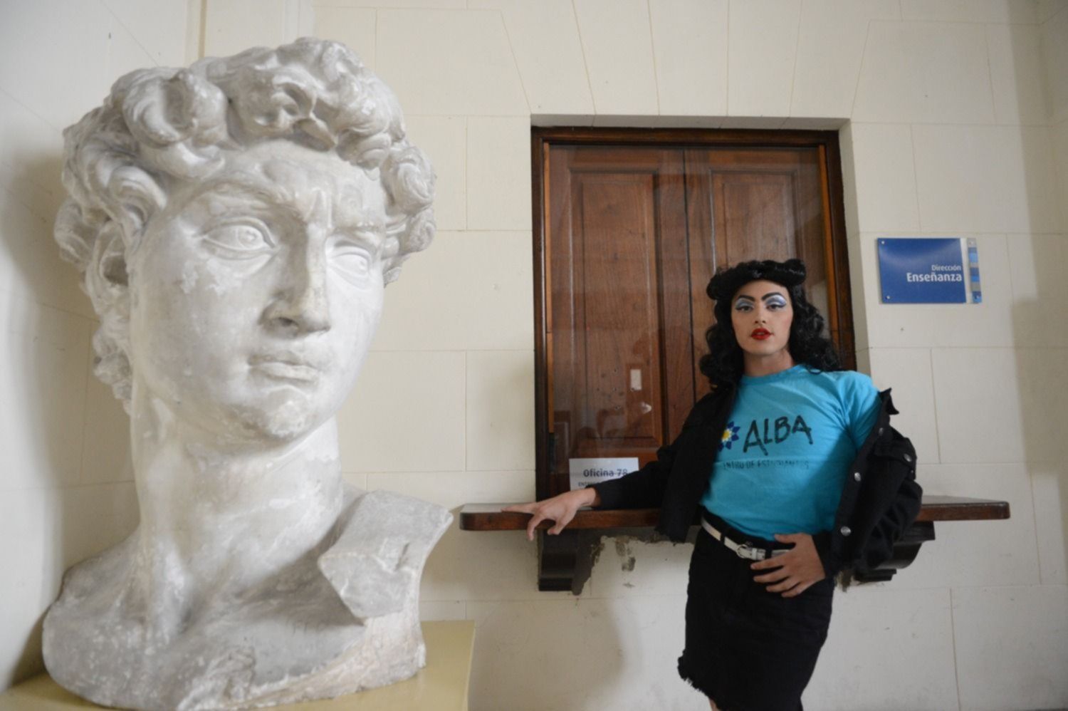 La perfección de los rulos de su peinado y su colorido maquillaje podrían haber sido realizados por los mejores estilistas de la región, pero fueron sus amigas quienes la ayudaron a prepararse para el encuentro con 0221.com.ar en una de las aulas de la unidad académica. “Esto lo tomo desde un lado personal como desde la actuación. Estudié cuatro años, me gustaba mucho, pero la dejé por temas de la carrera y se me cruzaban muchos horarios. Entonces eso me llamó la atención y lo empecé a hacer. Desde ahí nació el drag en mí y para esta oportunidad sentí que tenía que estar Bill In Cash, prefería traerla a ella”, explicó.