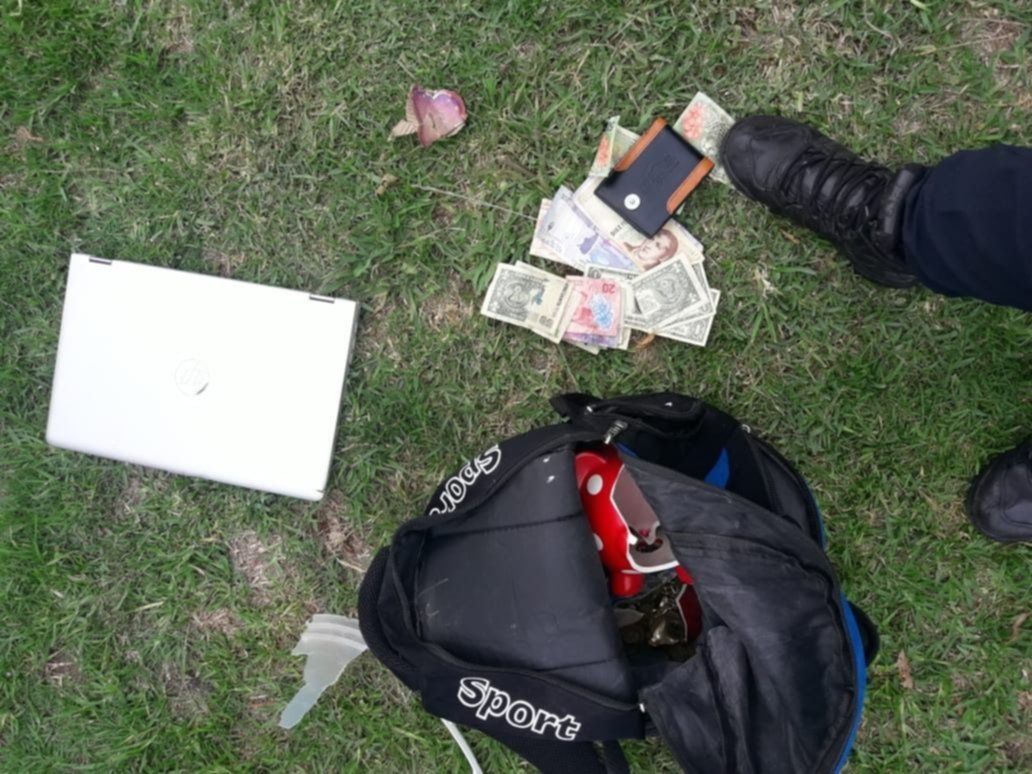 Aprovechando esta situación, recorrió cada habitación de la propiedad para apoderarse de una notebook HP, dinero en efectivo (pesos y dólares), una alcancía con monedas y joyas. Sin embargo, en el instante en que trataba de darse a la fuga, fue interceptado en la puerta por la dueña de casa.