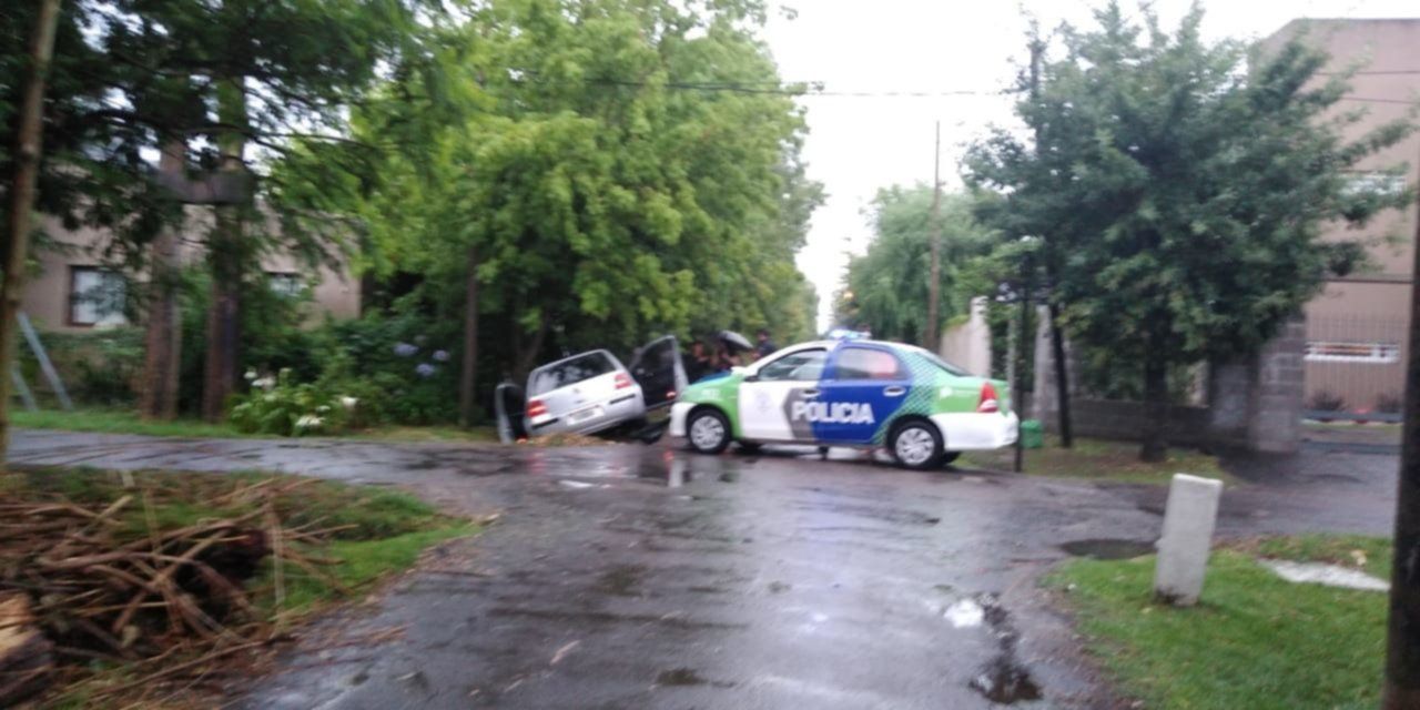 A causa de la gran cantidad de agua que había en la calle, los conductores no llegaron a frenar, impactaron y el auto terminó en la zanja.