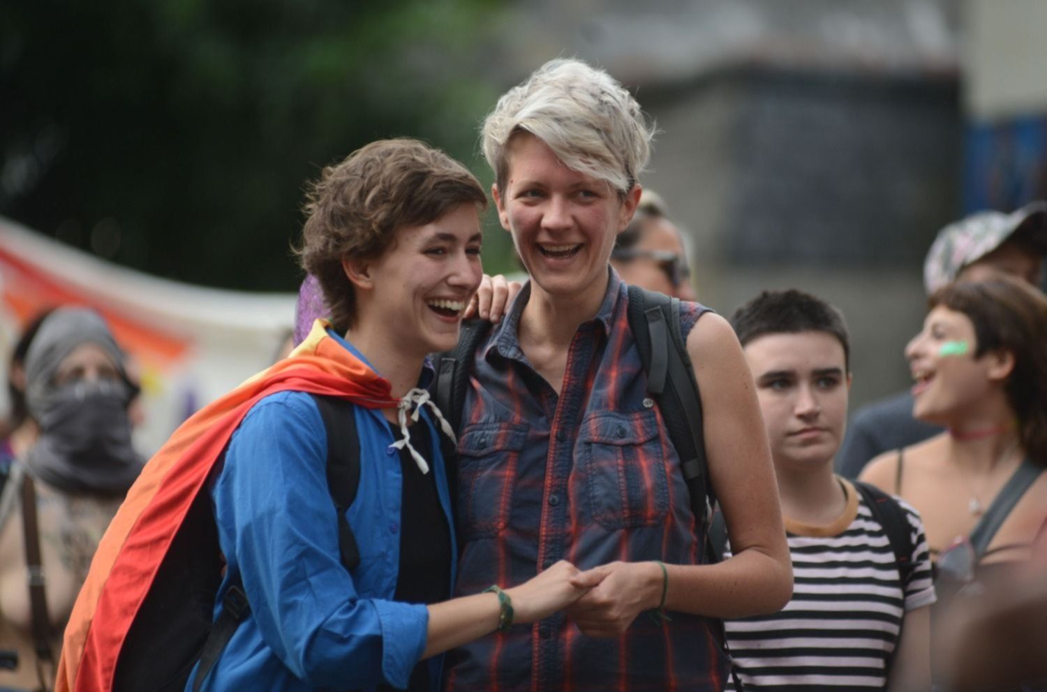 Los militantes del colectivo LGBTIQ en La Plata también protestaron “contra las políticas magras, caretas y hegemónicas de la diversidad: resistencia gorda, desbordante, disca y mostra; por la abolición del feminismo moralista; basta de violencia institucional; basta de cis hetero nazismo en América Latina y en todo el mundo, basta de miedo a las capuchas, por más políticas migratorias; NO al código de convivencia represivo de Garro que criminaliza a lxs trabajadorxs sexuales, callejerxs, ambulantes, migrantes y a la protesta social".
