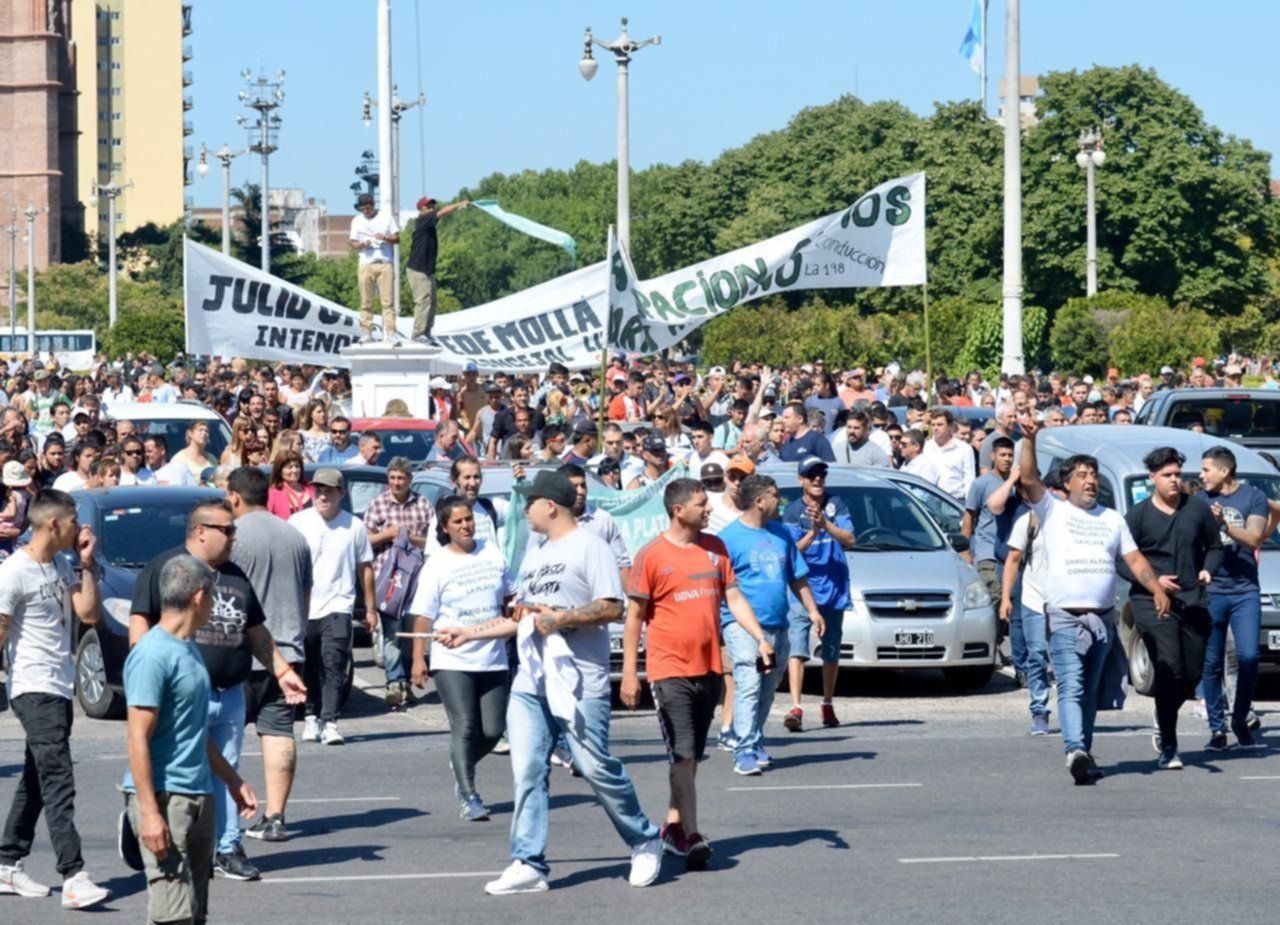 En la previa, una columna del Sindicato de Trabajadores municipales liderado por Darío Alfano concentró en Plaza Moreno y luego intentó entrar por la fuerza al edificio de 12 entre 51 y 53