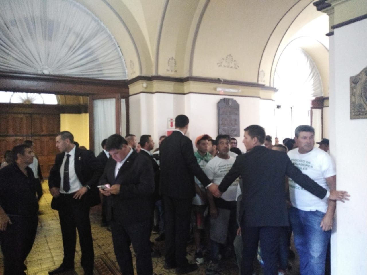 Hubo tensión, algunos golpes y empujones, las personas se amontonaron en el portón y finalmente terminaron accediendo. No obstante, parte algunos militantes fueron contenidos por la “barrera humana” que formó el personal de seguridad.