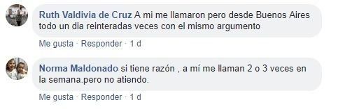 Gracias a la publicación, la información comenzó a circular por las redes, alertando a futuras víctimas. "A mí me llaman dos o tres veces por semana, pero no atiendo", indicó una frentista mientras que otra aseguró: "A mí me llamaron pero desde Buenos Aires. Todo un día en reiteradas oportunidades y con el mismo argumento".
