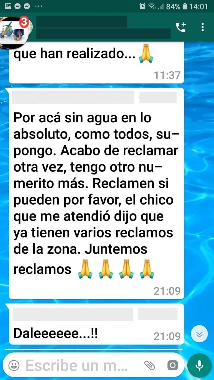 Vecinos de la zona de 2 y 530 estallaron contra ABSA por los constantes cortes en el suministro y la falta de respuestas de la empresa ante la catarata de reclamos. "Estamos viviendo un verano infernal y todos los días tenemos problemas por falta de agua. Hicimos infinidad de reclamos y no hay caso, nadie se acerca", indicó una frentista en diálogo con 0221.com.ar.