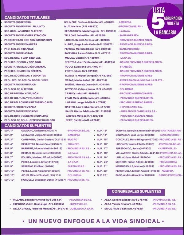 La seccional La Plata de la Asociación Bancaria se encamina a atravesar el capítulo final de la elección de su conducción, después de una disputa que incluyó presentaciones judiciales que objetaron el estatuto y derivaron en dos postergaciones y en la prórroga de los mandatos que vencieron el 4 de enero. El 21 de febrero, día de la cita en las urnas, el actual secretario general, Federico Bach, va por la reelección con la lista Celeste y Blanca, y enfrentará a Gustavo Belinche, un histórico dirigente con quien compartió lista en la elección anterior para derrotar al entonces oficialismo y ahora encabeza la lista Violeta.